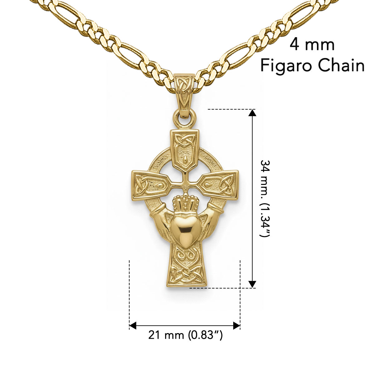 Celtic Cross and Irish Claddagh Sterling Silver Pendant and Figaro Chain with Vermeil Plate VSE994