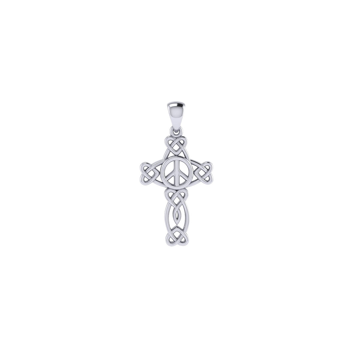Small Celtic Heart in Cross Shape with Peace Symbol Silver Pendant TPD6491