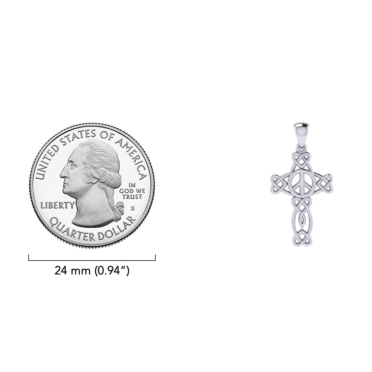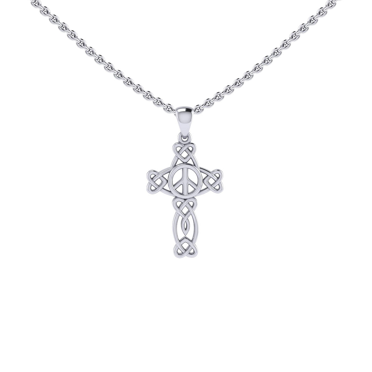Embrace harmony and timeless artistry with this exquisite Small Celtic Heart Cross Peace Pendant, a symbol of love, unity, and spiritual balance. Expertly crafted in fine sterling silver, this pendant beautifully merges ancient Celtic knotwork with the universal peace sign at its center. The intricate interlacing hearts form the arms of the cross, representing eternal love and interconnectedness, while the peace symbol radiates calm and compassion from within. Polished to a brilliant shine, its elegant openwork design captures both light and meaning—making it a perfect statement for those who cherish peace, faith, and the enduring strength of love. Ideal for daily wear or as a meaningful gift, this pendant celebrates the fusion of Celtic tradition and modern ideals, offering a powerful reminder that true peace begins within the heart.