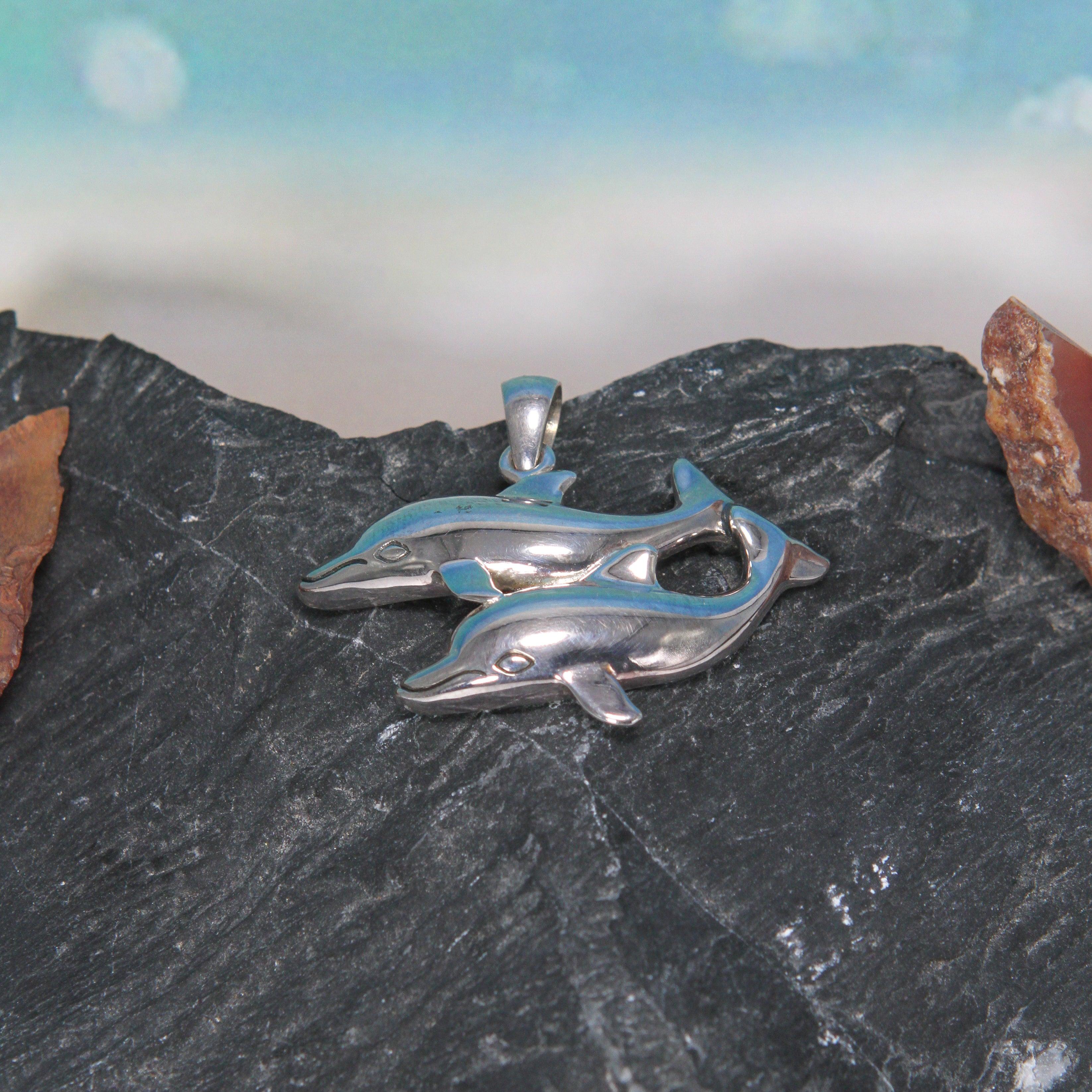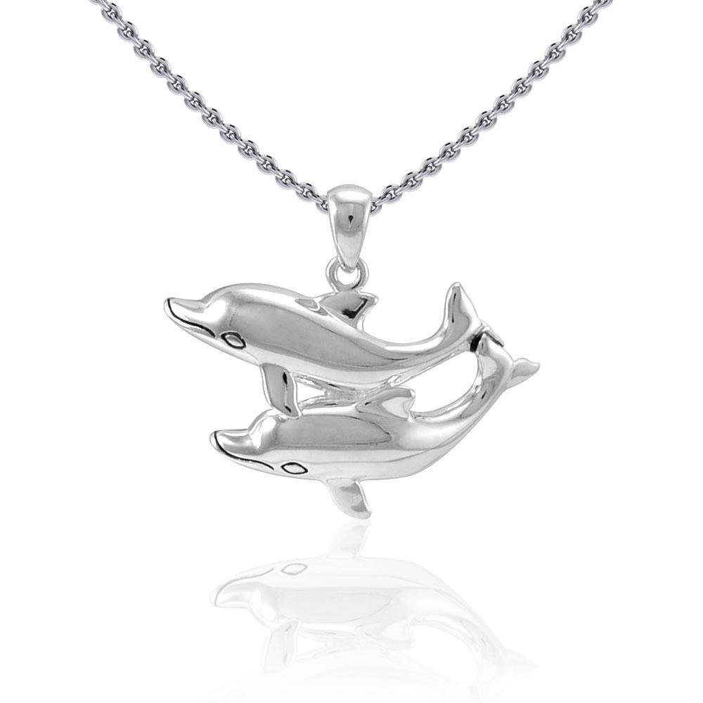 Double Dolphin Silver Pendant TPD5201 Dolphins are the guardians of the world's waters, one of Mother Natureโ€s most playful and intelligent creatures. They represent harmony, balance, and love. Dolphins are peaceful and gentle, but with a deep inner strength. They symbolize strong moral convictions and self-confidence, reminding us to speak...