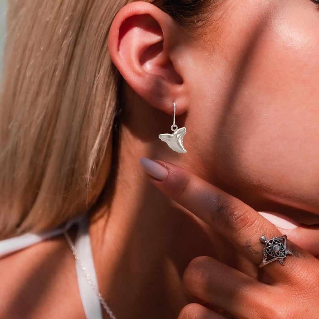 Channel the raw power and ancient mystery of the deep with these striking Shark Tooth Sterling Silver Earrings. A bold tribute to one of the ocean’s most formidable predators, these earrings feature a highly detailed shark tooth design that balances edgy style with refined craftsmanship. Each piece is cast in premium 925 sterling silver, ensuring a brilliant, long-lasting shine that beautifully complements any attire.