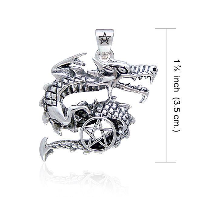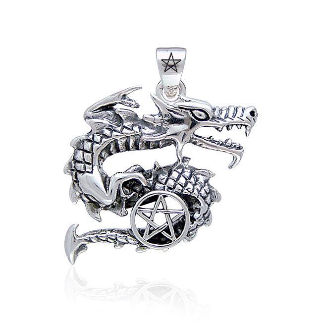 Curling Dragon and Pentacle Silver Pendant TP3295 Two popular mystical symbols, the dragon and The Star, are joined in the Curling Dragon and The Star Silver Pendant. Peter Stone - the world's leading manufacturer of fine sterling silver jewelry - has created the Dragon Collection to celebrate the dragon's renowned...