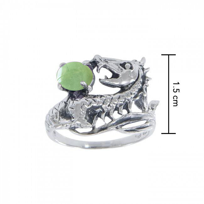 Dragon Holding Gem Sterling Silver Ring TR3808 Green Jade