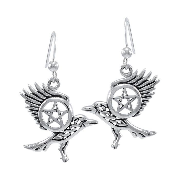Raven with Five-Pointed Star Sterling Silver Earrings TER1477