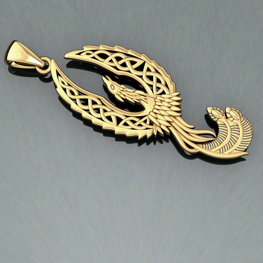 Mythical Celtic Phoenix Solid Gold Pendant GPD5724