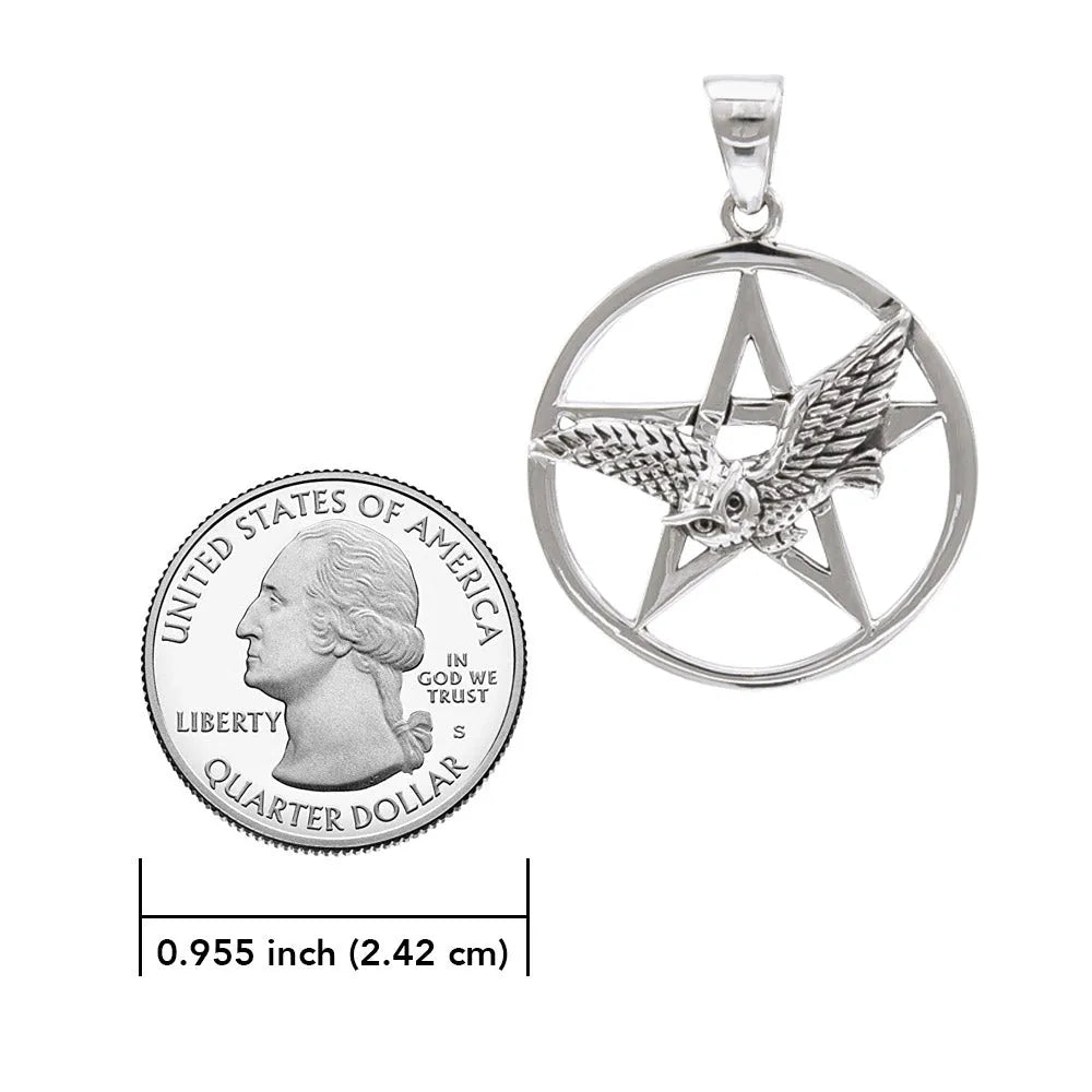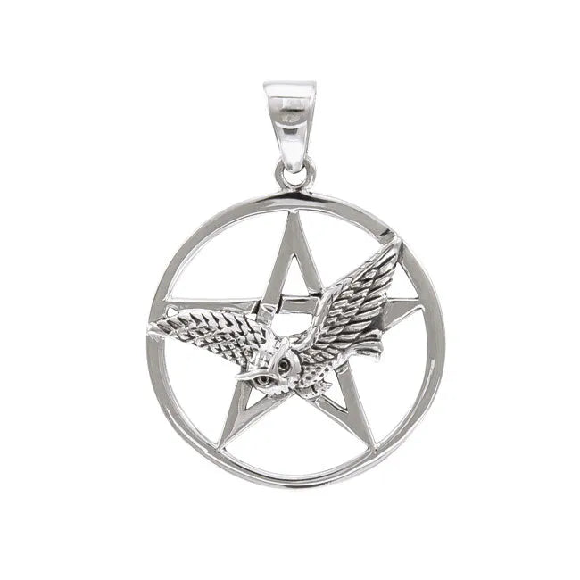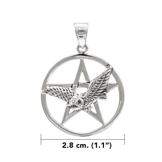 Flying Owl with Five-Pointed Star Sterling Silver Pendant TPD4334