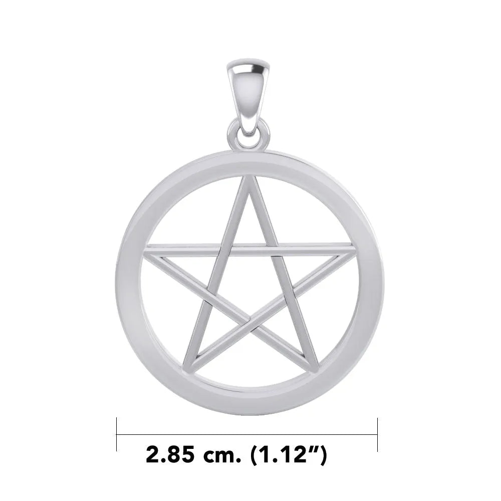 This quintessential pendant is an elegant and classic representation of the Pentacle (or Pentagram). Crafted from highly polished sterling silver, the design features a clean, openwork five-pointed star contained within a perfect circle. Its simple, unadorned aesthetic allows the profound and powerful meaning of the symbol to stand on its own.