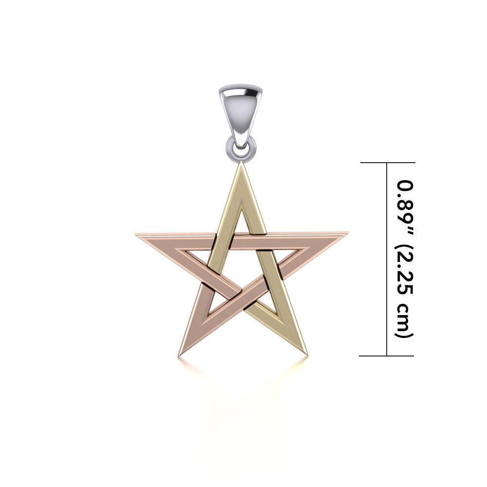 This striking pendant features a classic five-pointed star design crafted in three complementary metal tones, creating visual depth and contemporary sophistication. The multi-tone approach combines the warmth of rose gold, the brightness of white gold, and the richness of yellow gold in a harmonious composition. Perfect as a standalone statement piece or layered with other necklaces, this versatile pendant works for both everyday wear and special occasions. The balanced proportions and refined execution make it an excellent choice for those seeking meaningful jewelry with timeless appeal.