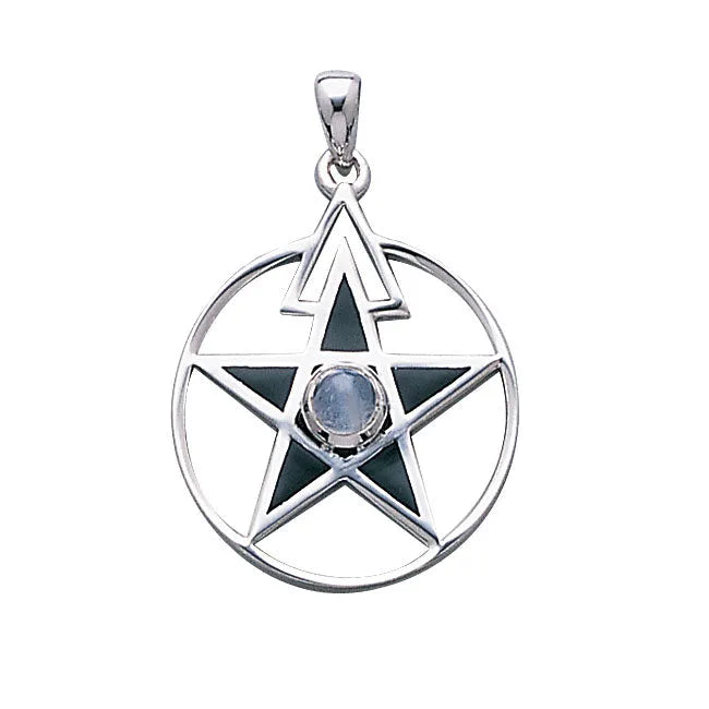 This powerful and esoteric pendant is a symbol of spiritual achievement and mastery, meticulously crafted in gleaming sterling silver. The primary motif is the classic Five-Pointed Star (Pentacle), representing elemental balance and protection.