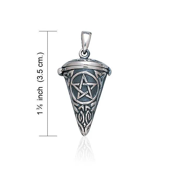 This opening pendulum features a striking five-pointed star pendant, a classic symbol revered across numerous spiritual and esoteric traditions. The hinged design allows the pendant to open, making it ideal for holding herbs, crystals, or other materials during divination work or energy practices. Crafted with attention to detail, this piece combines functionality with symbolic significance, serving both practitioners and collectors who appreciate meaningful jewelry with deeper purpose.