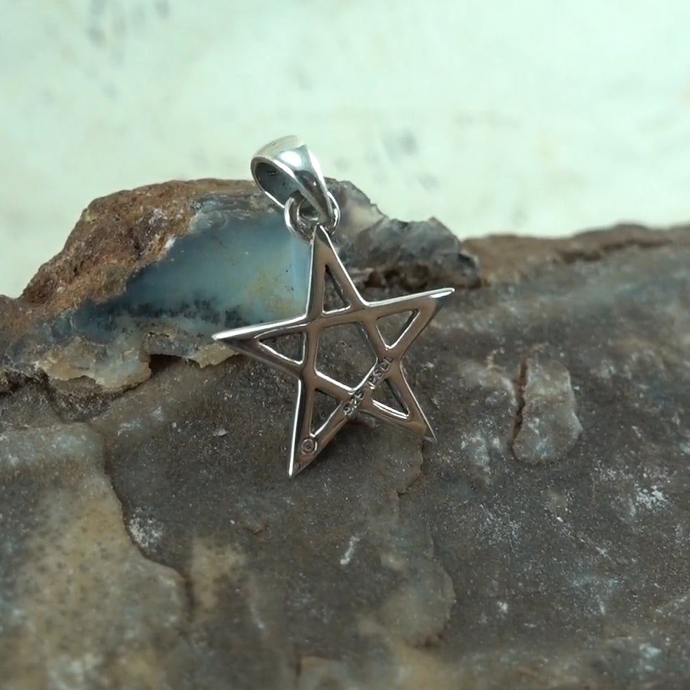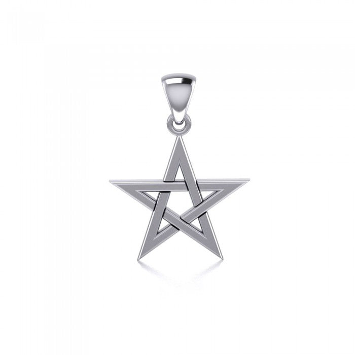 This elegant pendant features a classic, minimalist five-pointed star, often referred to as a pentagram or pentacle when used symbolically. Crafted from bright sterling silver, the star is typically a simple, clean, and polished design that allows its profound historical meaning to take center stage.
