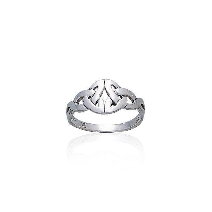 This symmetrical sterling silver Triquetra ring by Peter Stone is a beautiful and tasteful way to honor the concept of trinity.