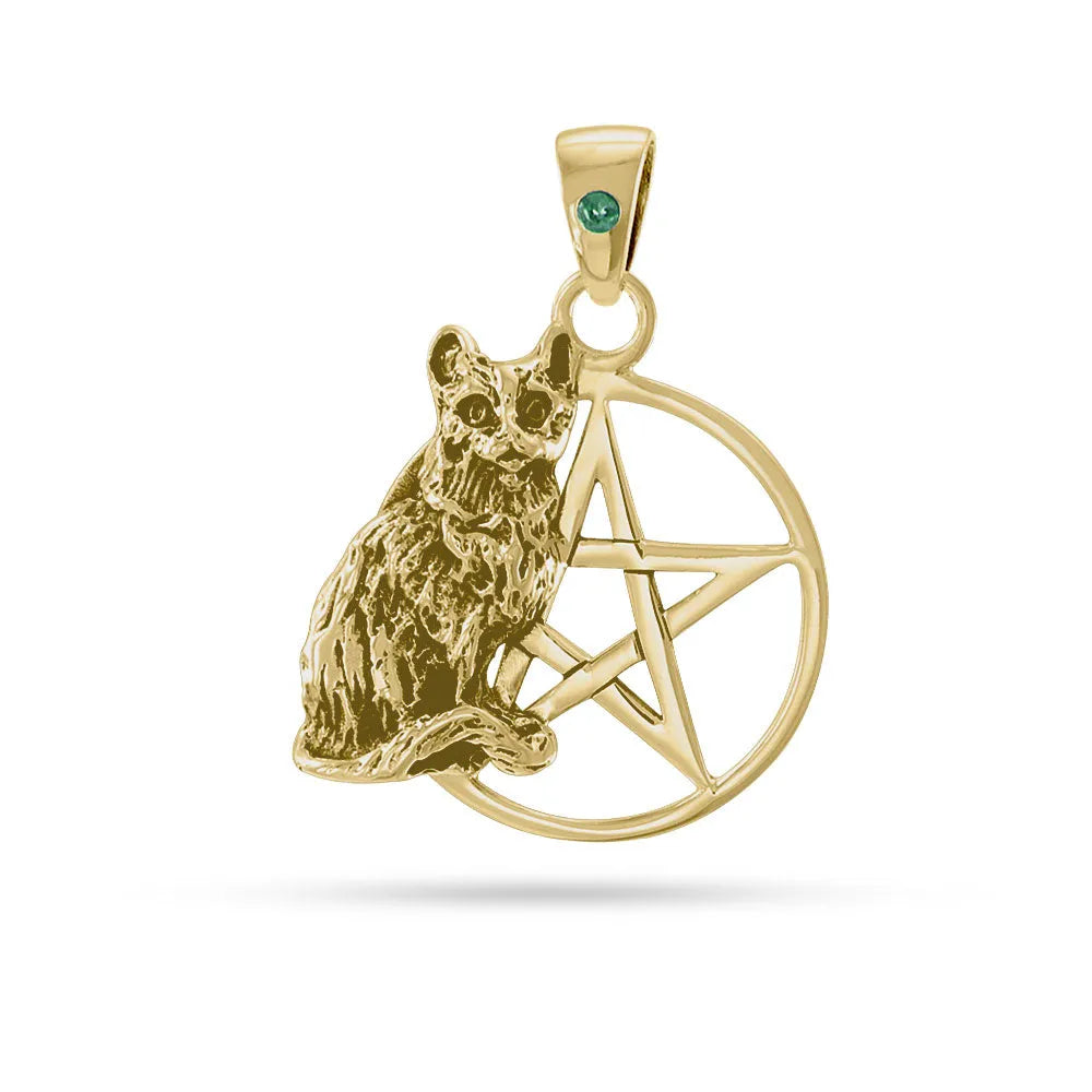 El gato, con su naturaleza misteriosa y su papel legendario en la tradición ancestral, es el complemento perfecto para este pentáculo wiccano. Blue Moon and Stars, el fabricante líder mundial de joyería fina de plata de ley y oro para la Wicca y el paganismo, ha creado la Colección Gato Wicca para celebrar la larga relación del gato como compañero de quienes practican la Wicca. Elaborado meticulosamente en oro de ley, este colgante de pentagrama de gato en oro de ley es una celebración encantadora de estos icónicos símbolos wiccanos.