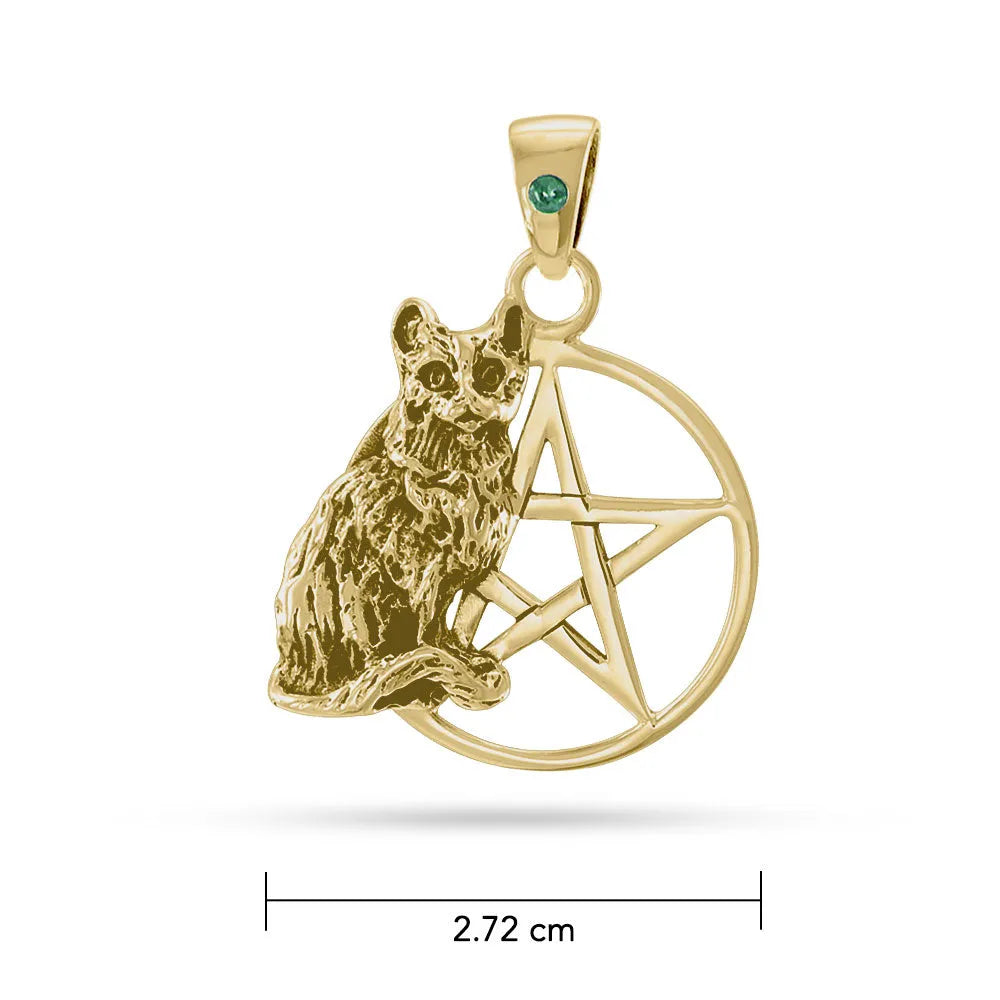 Pentáculo de oro de gato GTP3230 El gato, con su naturaleza misteriosa y su papel legendario en la tradición ancestral, es el complemento perfecto para este pentáculo wiccano. Blue Moon and Stars, el fabricante líder mundial de joyería fina de plata de ley y oro para la Wicca y el...