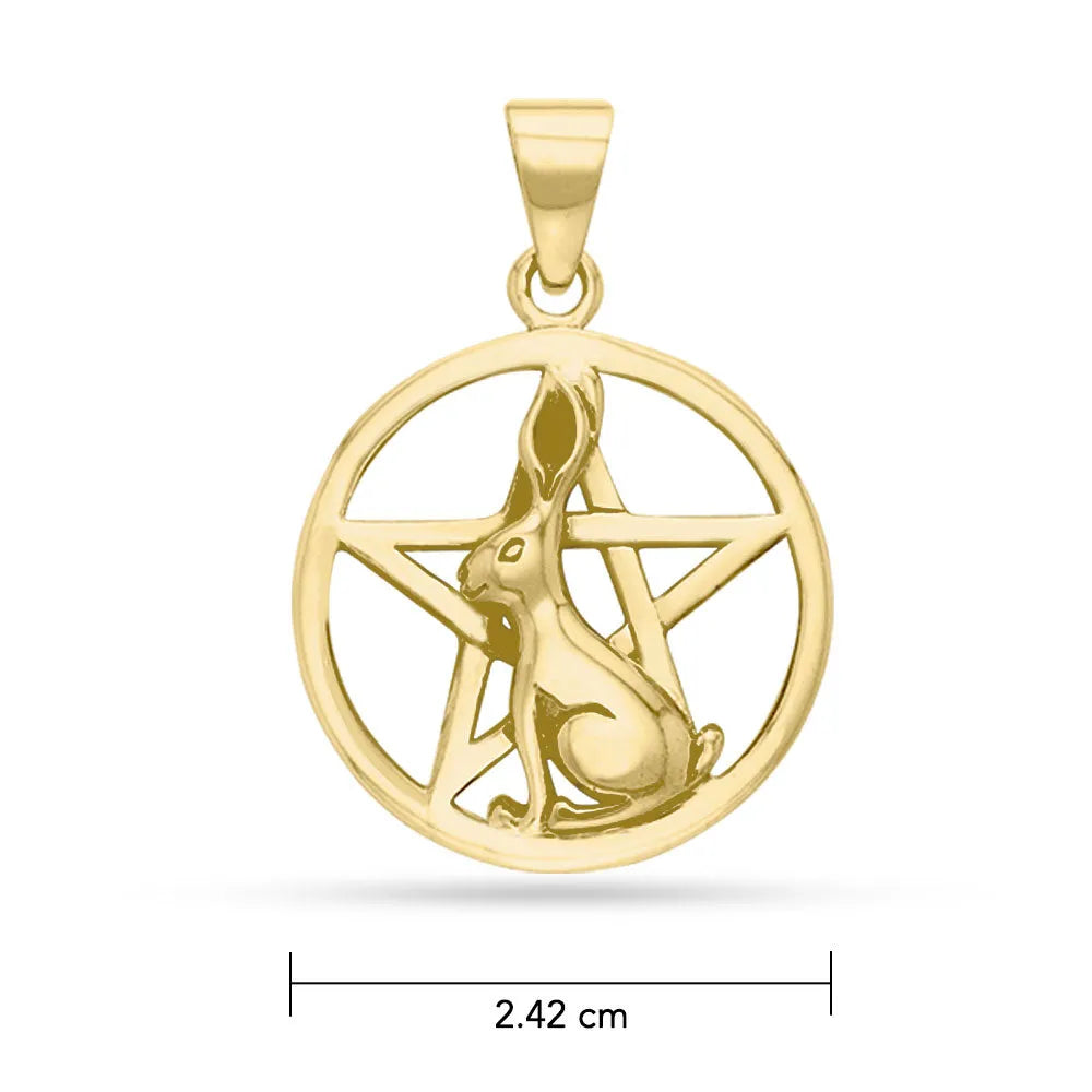 Elaborado meticulosamente en oro, este inspirador colgante de pentagrama de liebre honra la energía, la resiliencia y el espíritu eterno de estas criaturas terrenales y sus primas, las liebres.