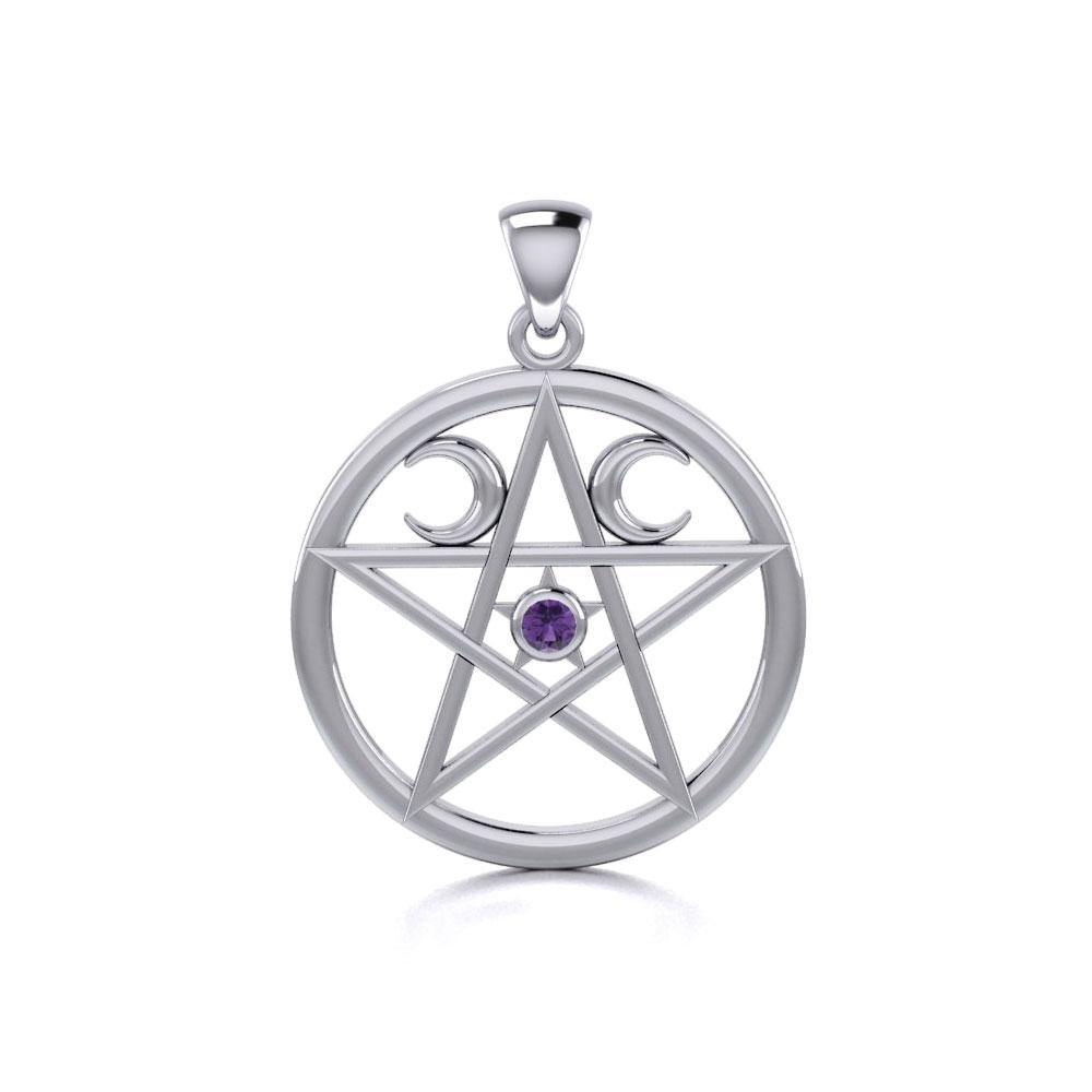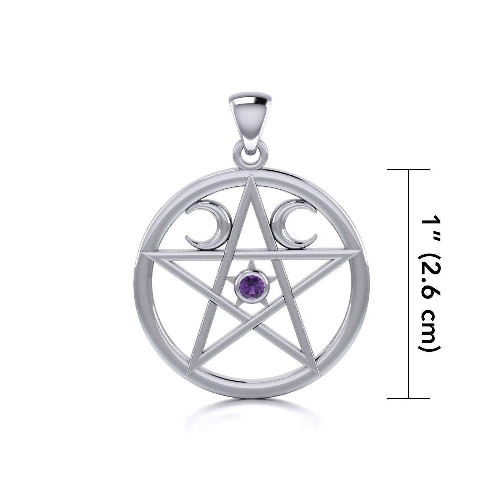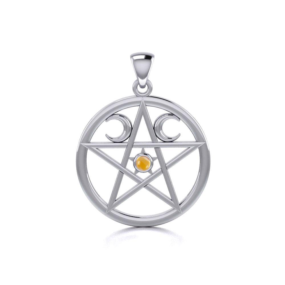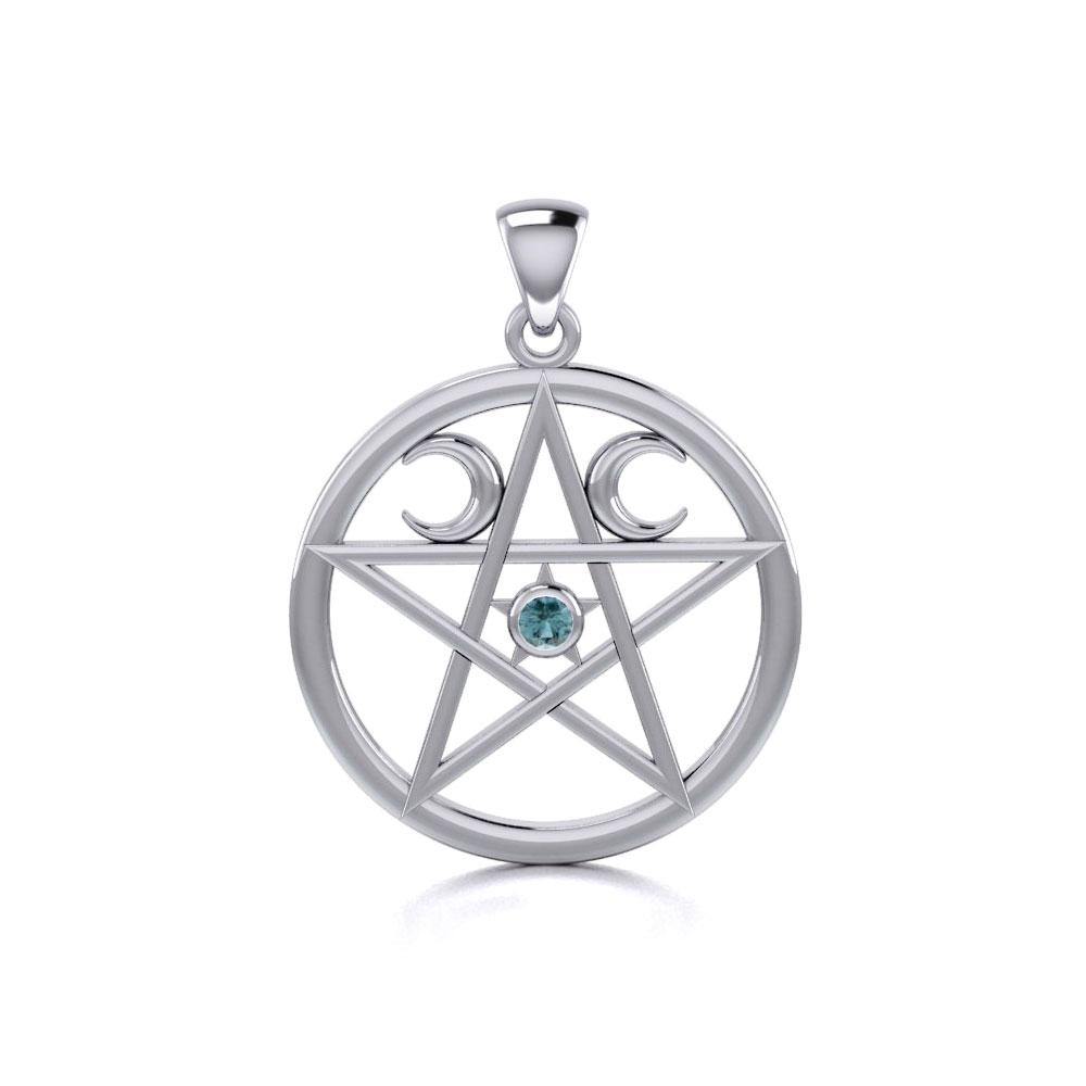 Colgante de plata de ley con pentáculo y luna creciente y gema TP469