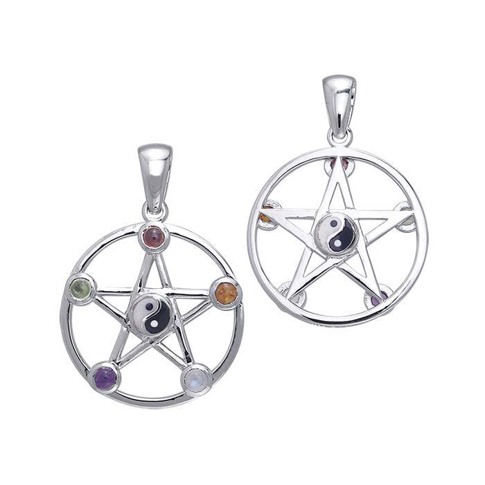 Colgante de plata de ley con pentáculo Yin Yang y gemas TPD109
