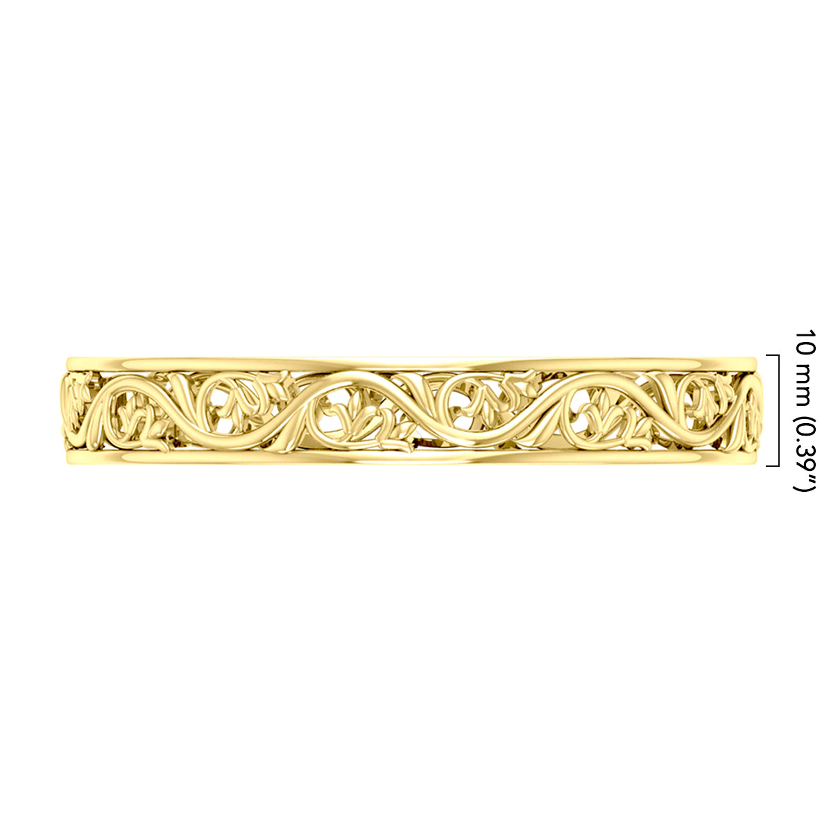 This elegant Filigree Leaf Solid Gold Bangle adds a touch of sophistication to any outfit. Handcrafted with delicate filigree leaves, it is made of high-quality solid gold that guarantees durability and timeless beauty. Perfect for everyday wear or special occasions. (39 words)
