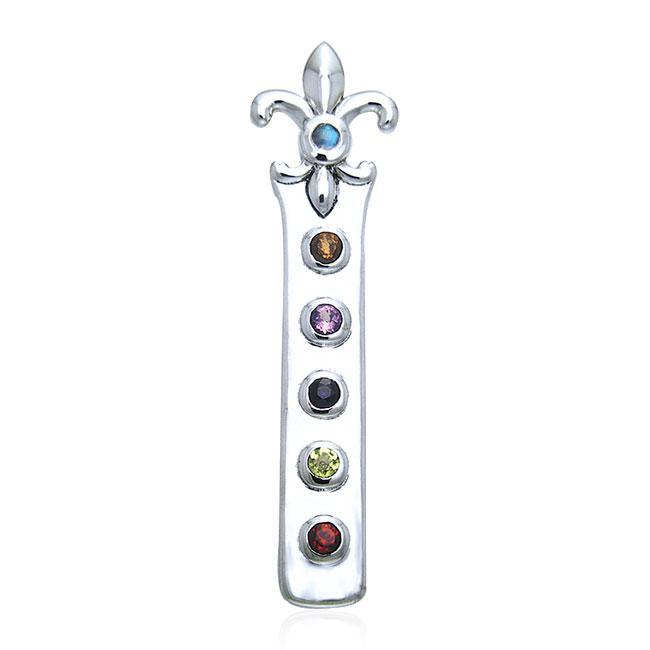 Fleur De Lis Sterling Silver Pendant with Chakra Gems TPD537
