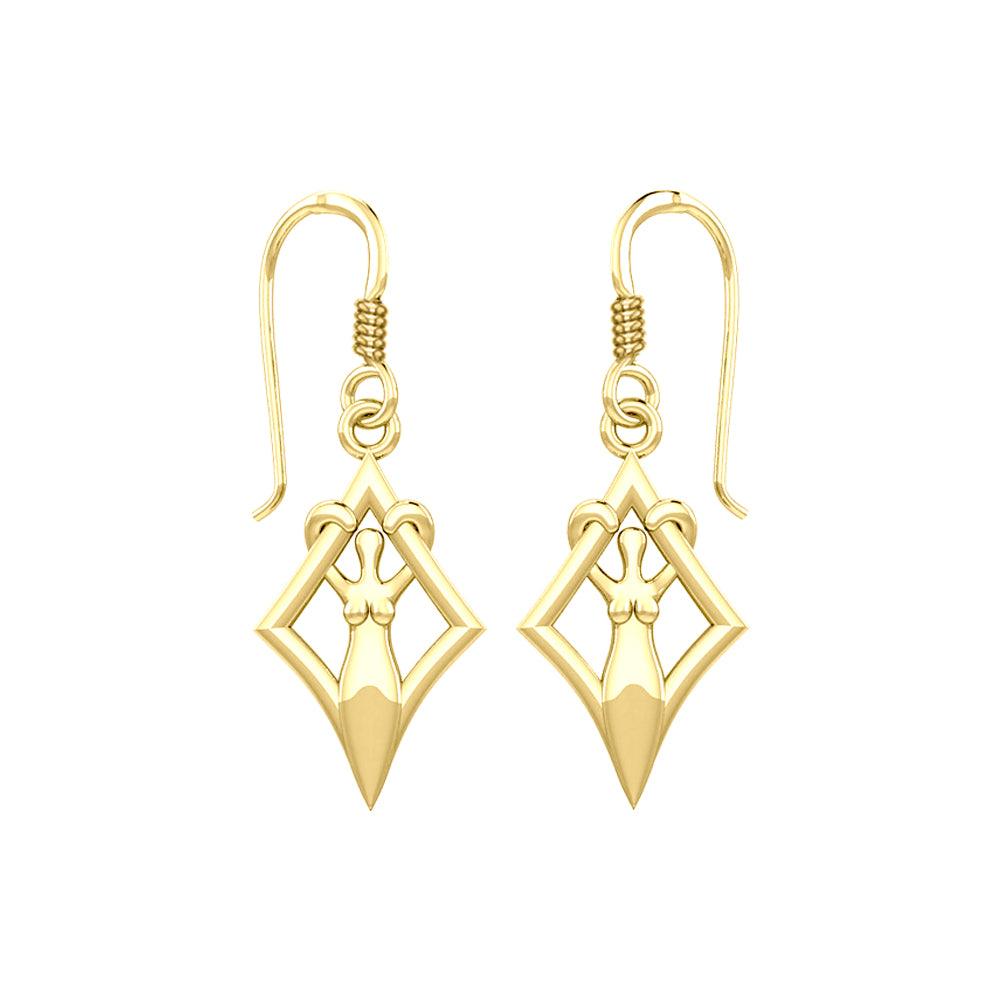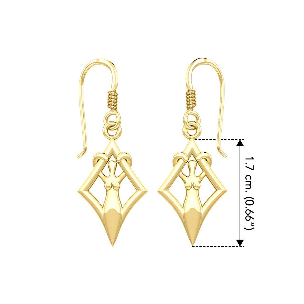 The Goddess in Diamond Frame Solid Yellow Gold Earrings embody a harmonious blend of celestial elegance and timeless sophistication. Crafted with precision, these earrings feature a delicate representation of a goddess figure enclosed within a finely detailed diamond-shaped frame. The goddess symbolizes beauty, strength, and divine femininity, creating a symbolic and empoGERing adornment.