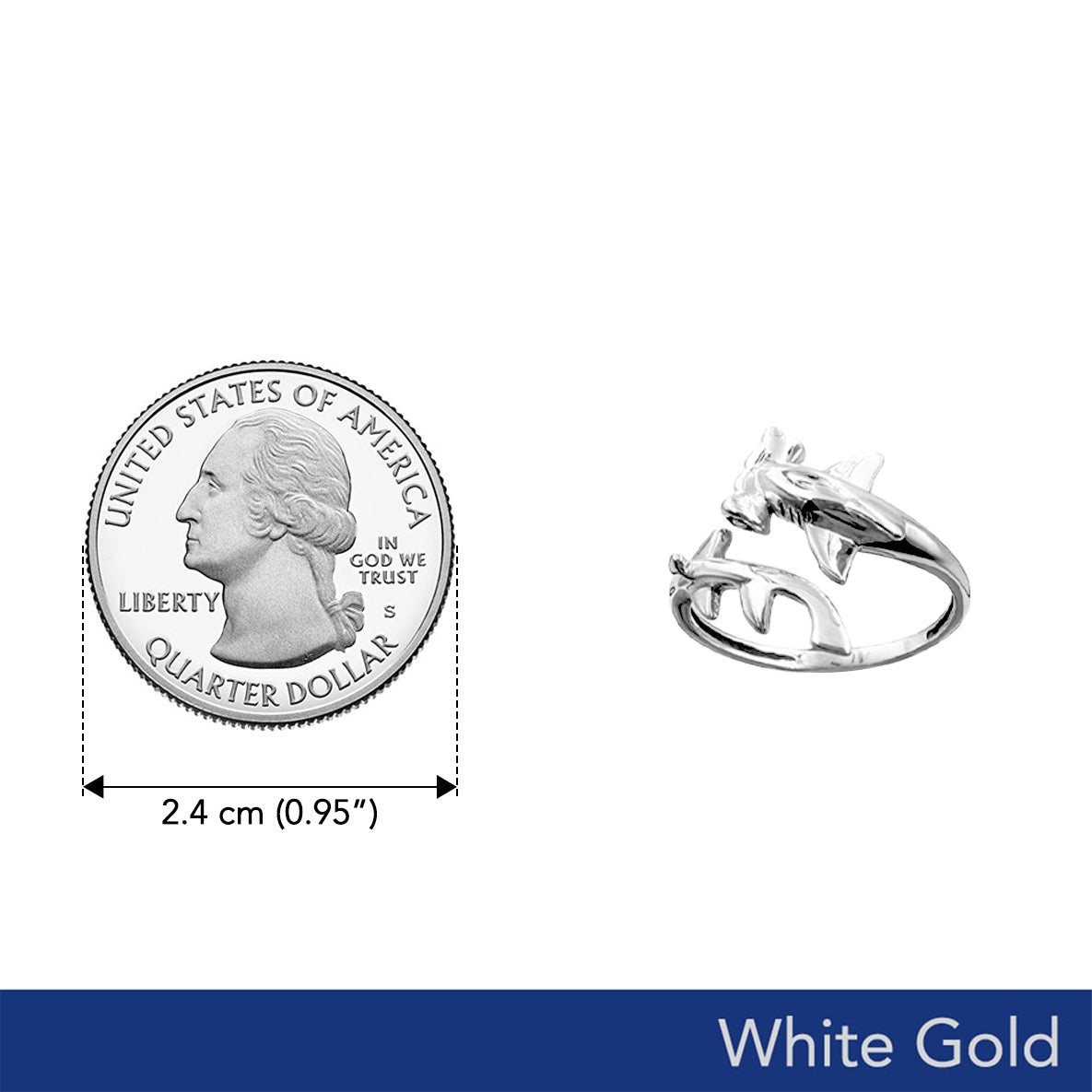 Hammerhead Shark Solid White Gold Wrap Ring WRI2555