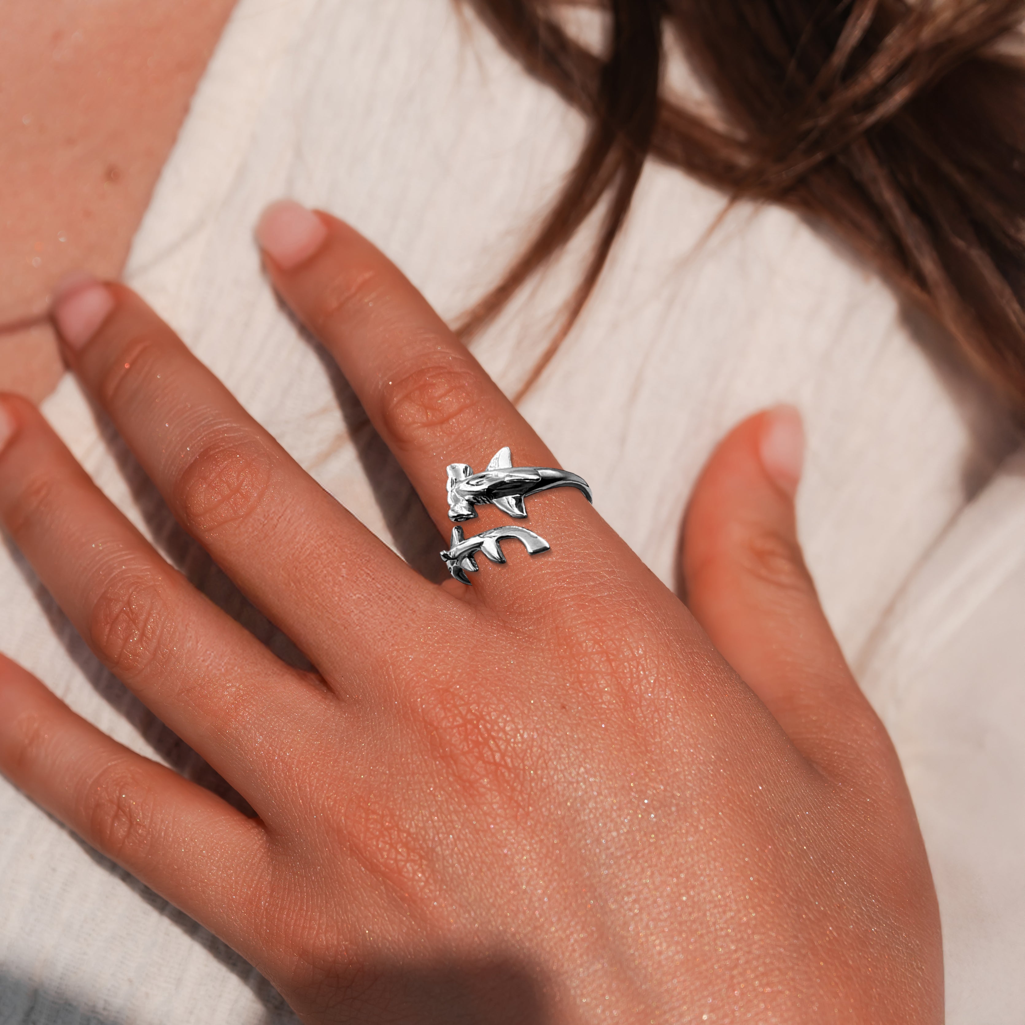 Discover the strength and beauty of the ocean with our Hammerhead Shark Solid White Gold Wrap Ring. Made with high-quality solid white gold, this unique ring features a sleek and elegant design that wraps around your finger for a comfortable fit. Celebrate your love for marine life with this stunning wrap ring.