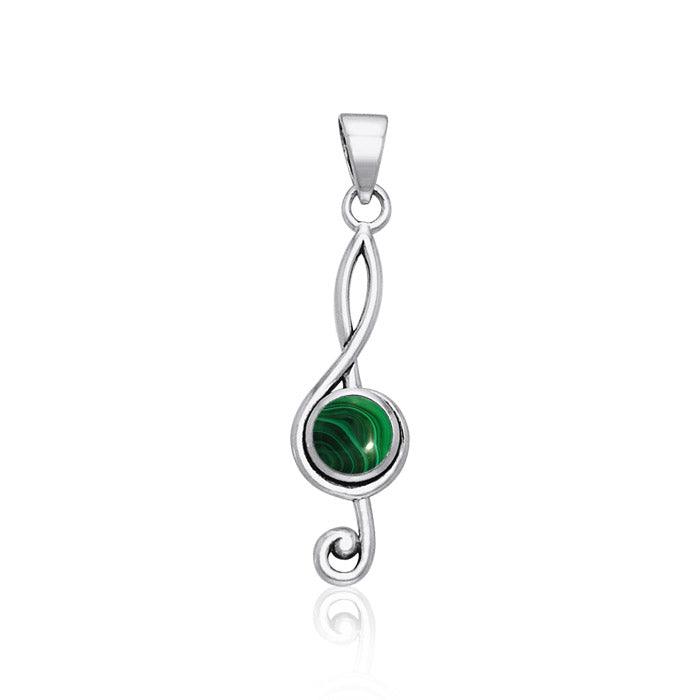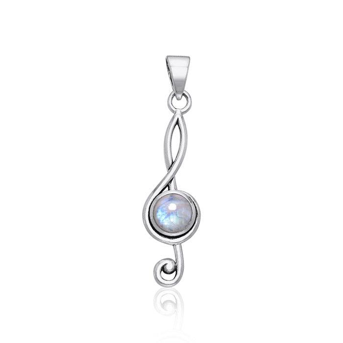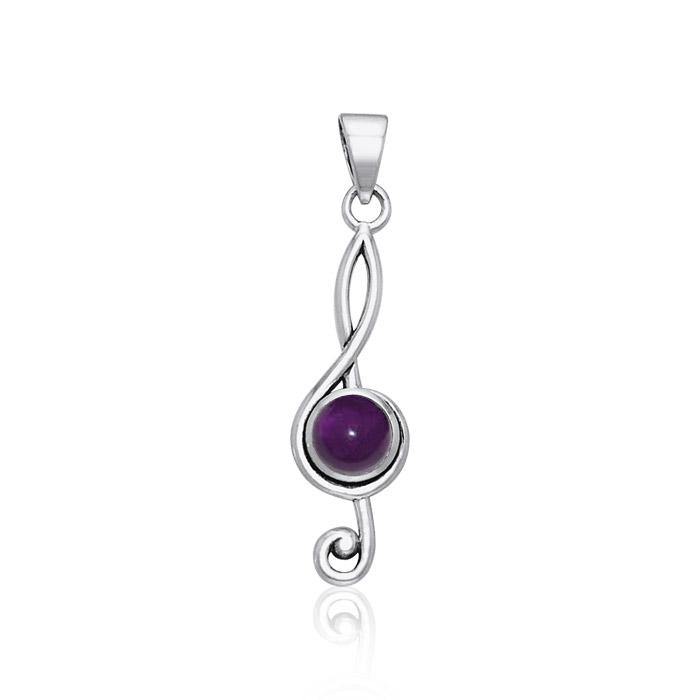 Your choice of round cabochon gemstone drapes from your neck in this simple, sterling silver treble clef pendant for an energetic and uplifting expression of musical celebration and personal elegance.