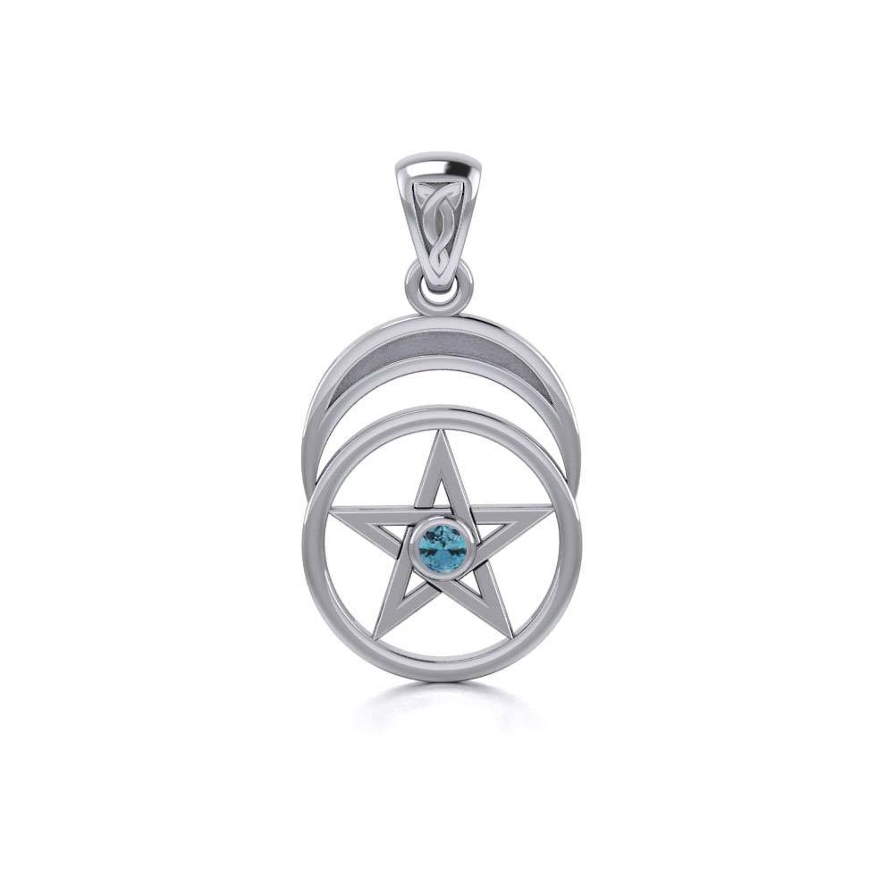 The Five-Pointed Star with Moon Sterling Silver Pendant TP1279
