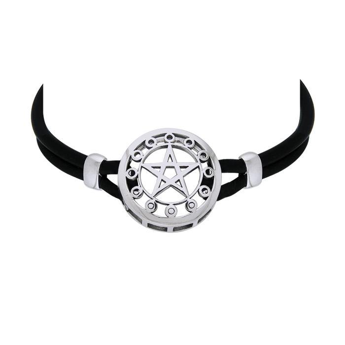 Sterling Silver Moon Phase The Five-Pointed Star Leather Cord Necklace TNC258