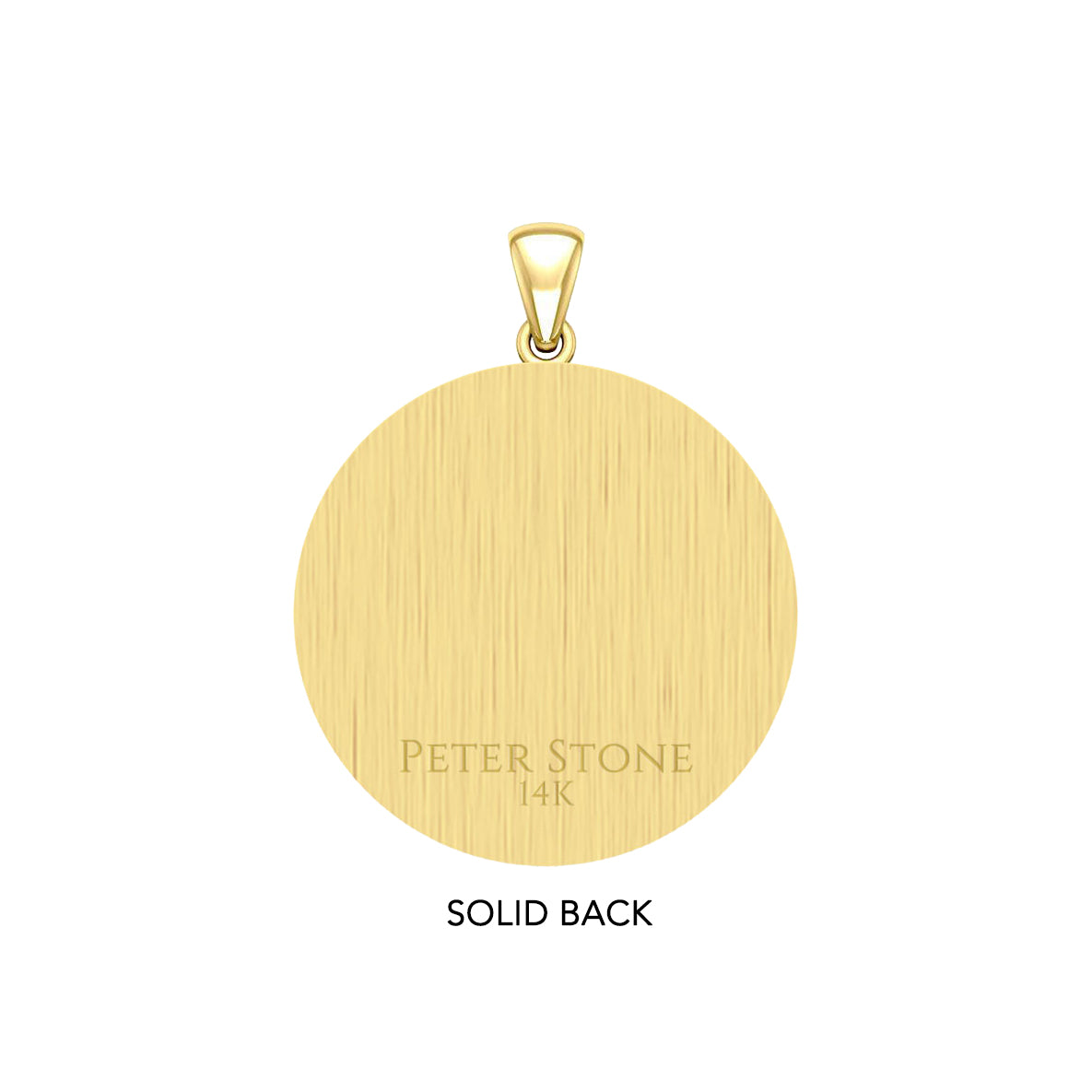 Handcrafted from 14K solid gold, the solid-back design ensures durability while preserving the intricate symbolism engraved on its face. Whether worn as a statement of faith, a source of comfort during challenging times, or a meaningful heirloom gift, this pendant is a timeless expression of devotion and inner strength.