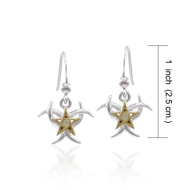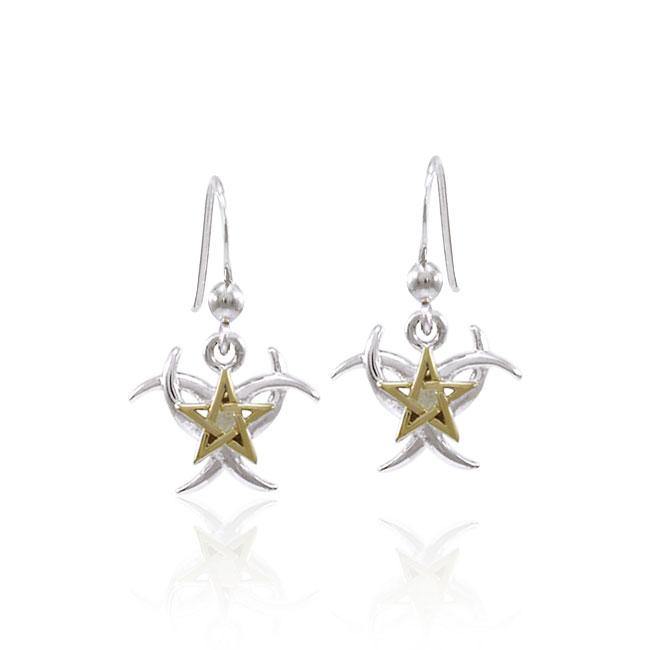 Celestial elegance meets refined craftsmanship in these Triple Crescent Moon and Star earrings. Each piece features a sophisticated arrangement of crescent moon motifs paired with delicate star accents, creating a harmonious design that captures the night sky's mystique. Expertly crafted with attention to detail, these earrings offer a distinctive aesthetic for those who appreciate celestial-inspired jewelry. The balanced composition makes them versatile enough for both everyday wear and special occasions, while their symbolic imagery adds meaningful depth to your collection.